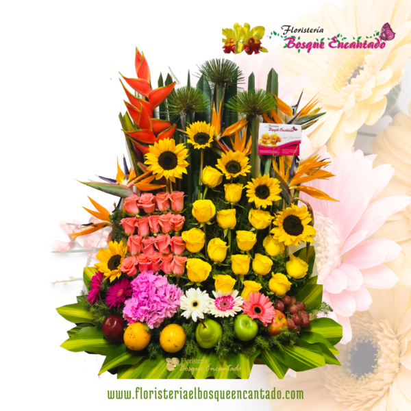 Corazón mediano en rosas + peluches pequeños + chocolates + globo metalizado grande + globos en helio