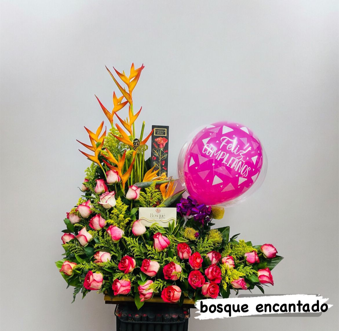 Diseño en rosas, exóticas, chocolate y globo quantity