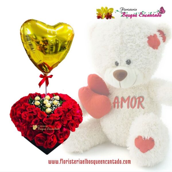 Ancheta con peluche + chocolates + globos metalizados